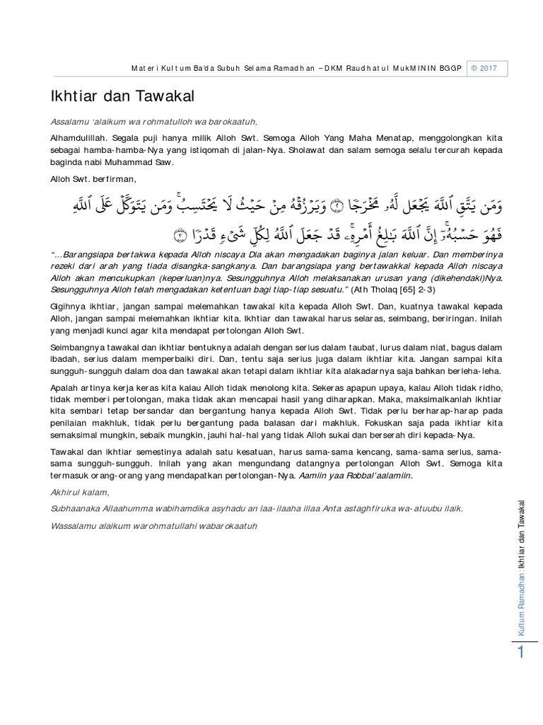 Materi Kultum Tawakkal - Pdf The Ethical Practices Of Islamic Banking An Analysis From Customer Satisfaction Perspective : Check spelling or type a new query.